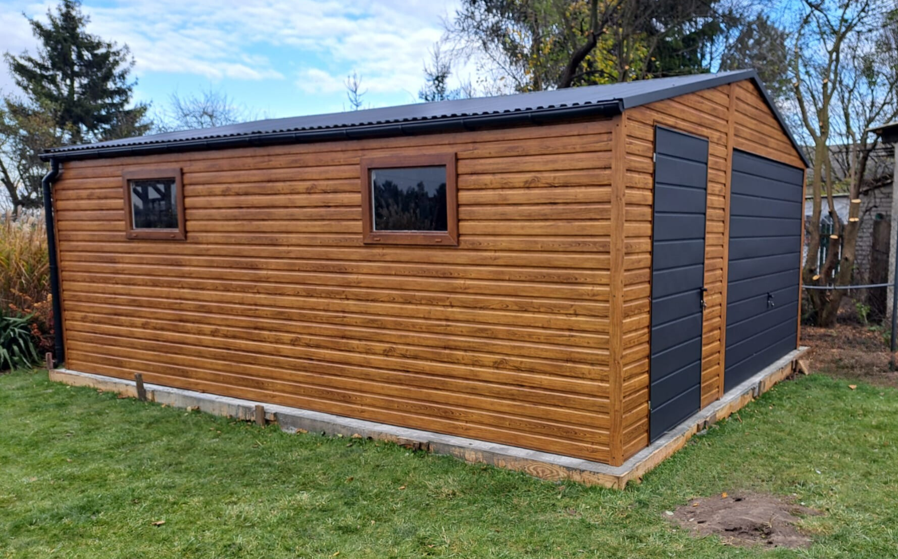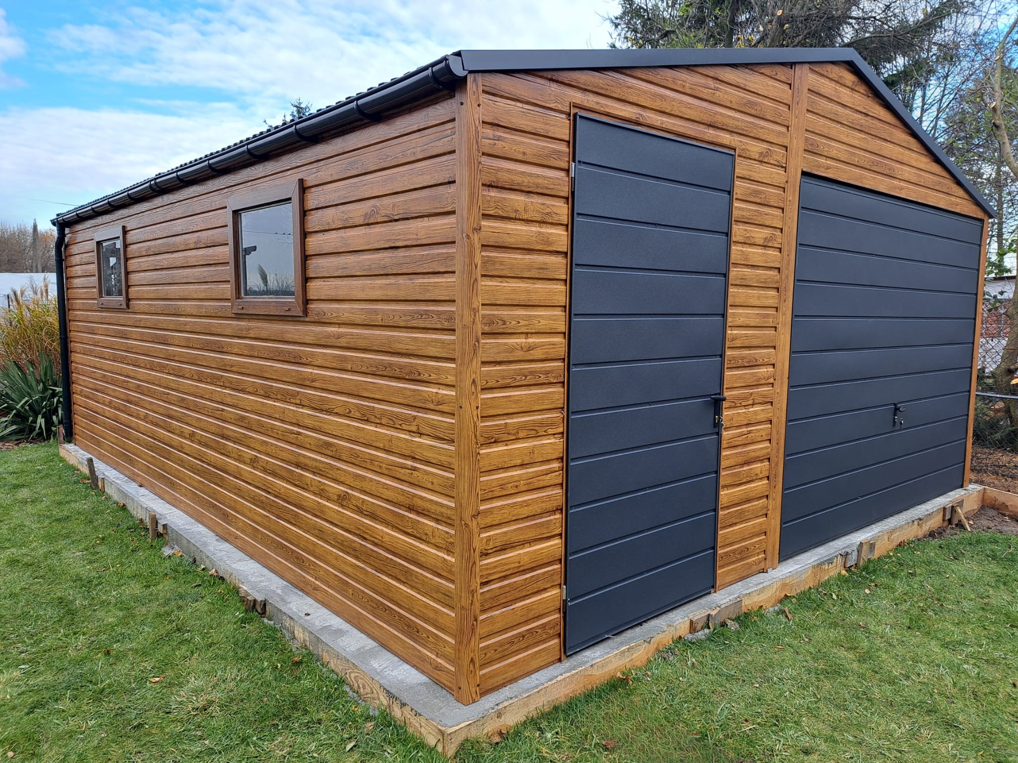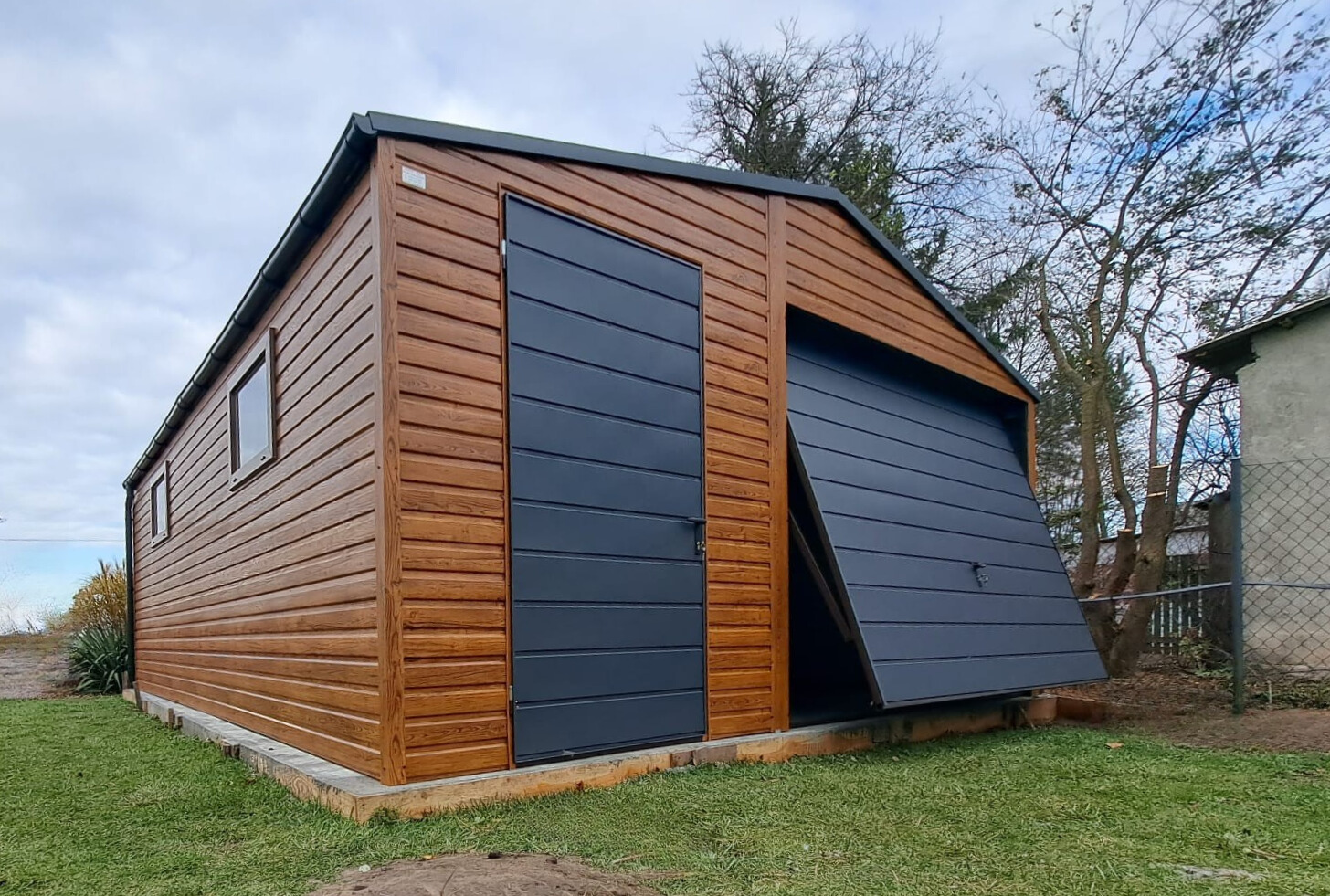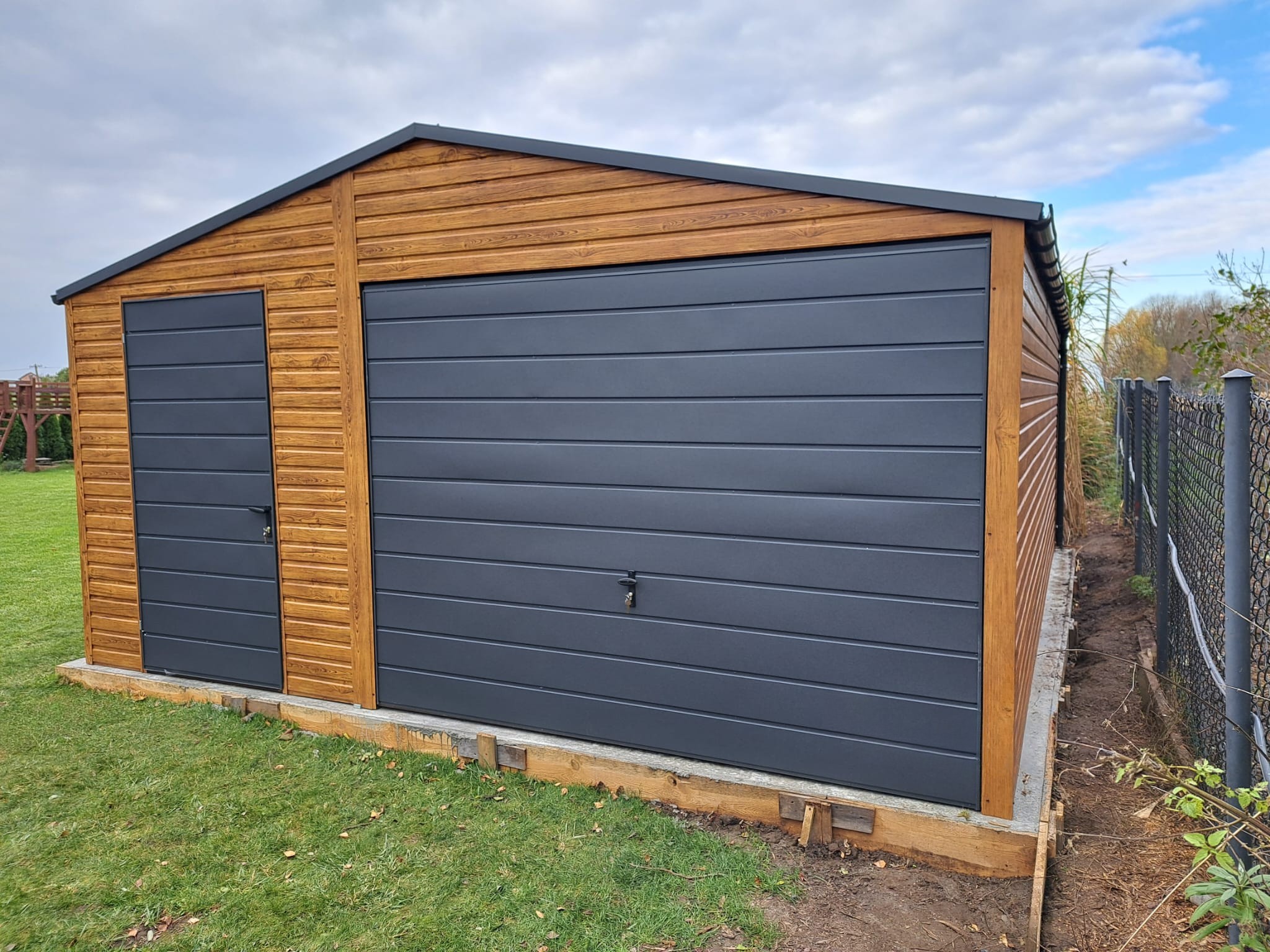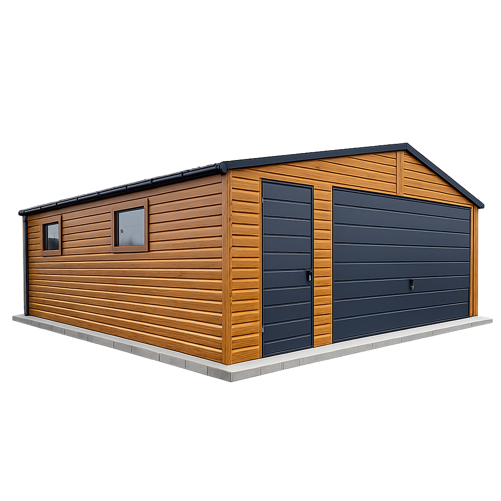 – kolor ścian garażu drewnopodobny / złoty dąb