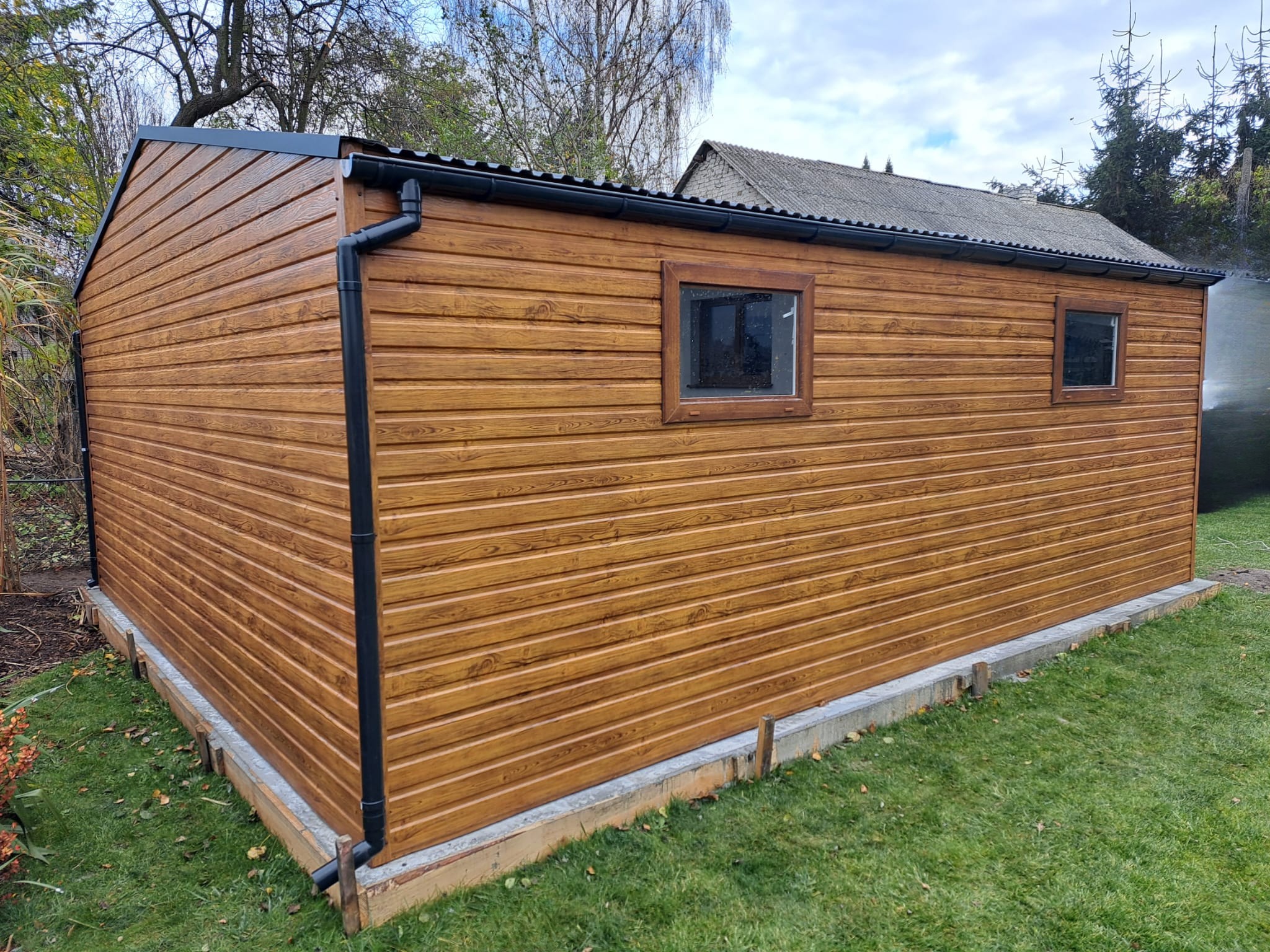 – dach dwuspadowy, pokryty blachą trapezową